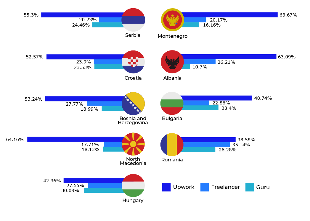 The total number of gig workers in the region is stagnating, but the workers from other platforms are migrating to Upwork. In the most recent measurement, Upwork became the most dominant digital platform in all the countries of South-Eastern Europe for the first time.