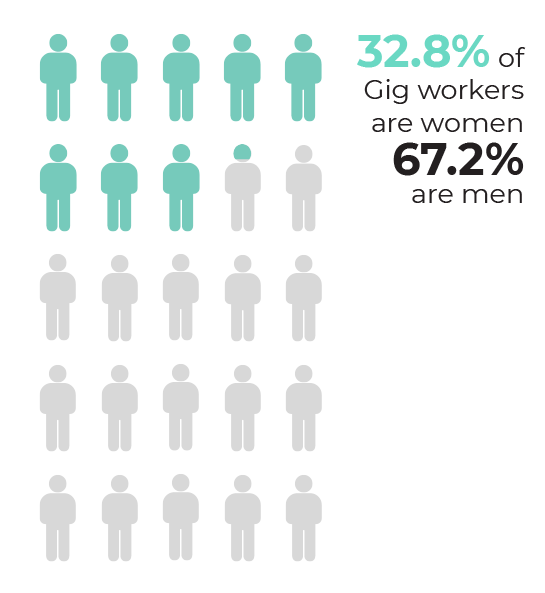 % OF GIG WORKERS BY GENDER AND OCCUPATION
